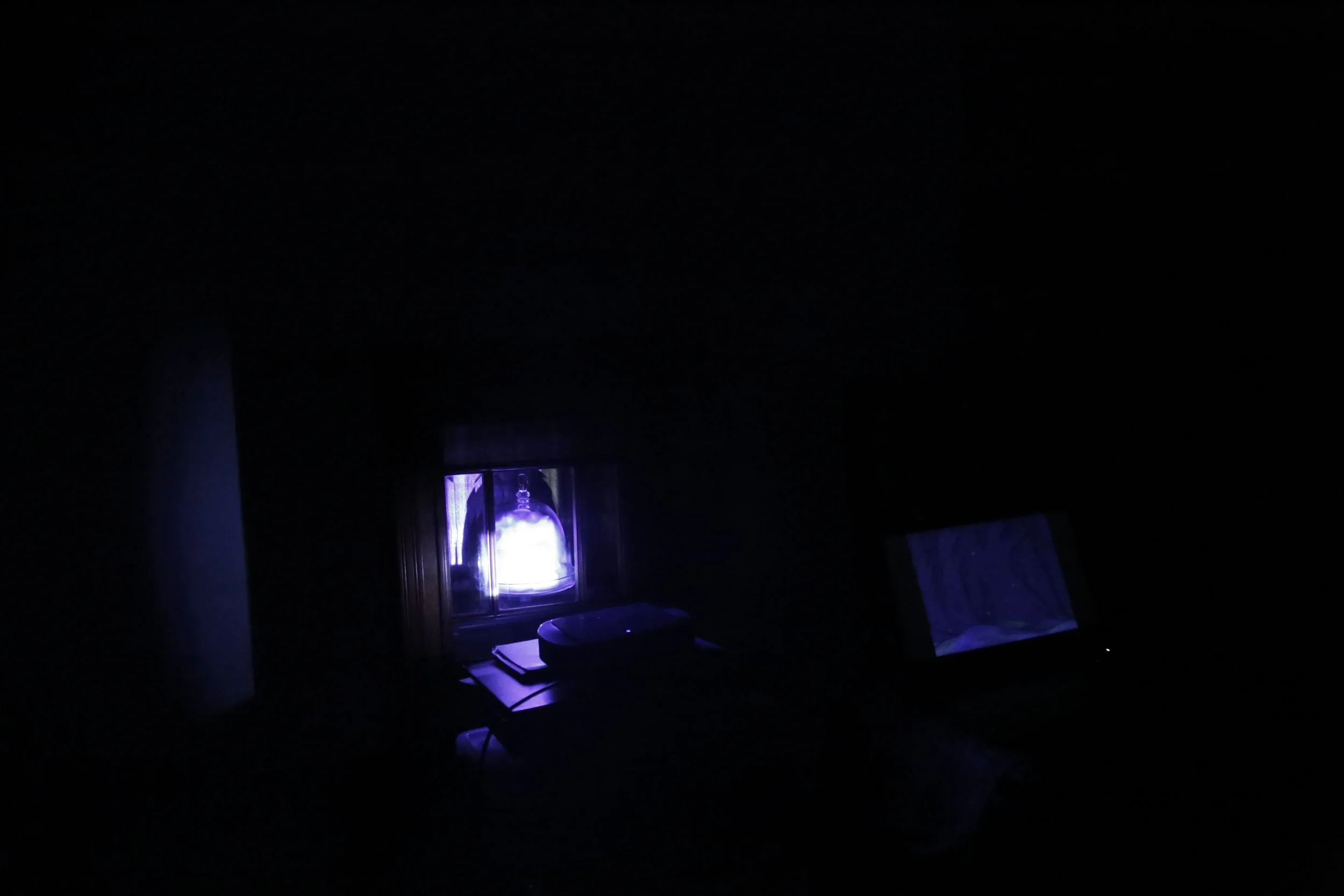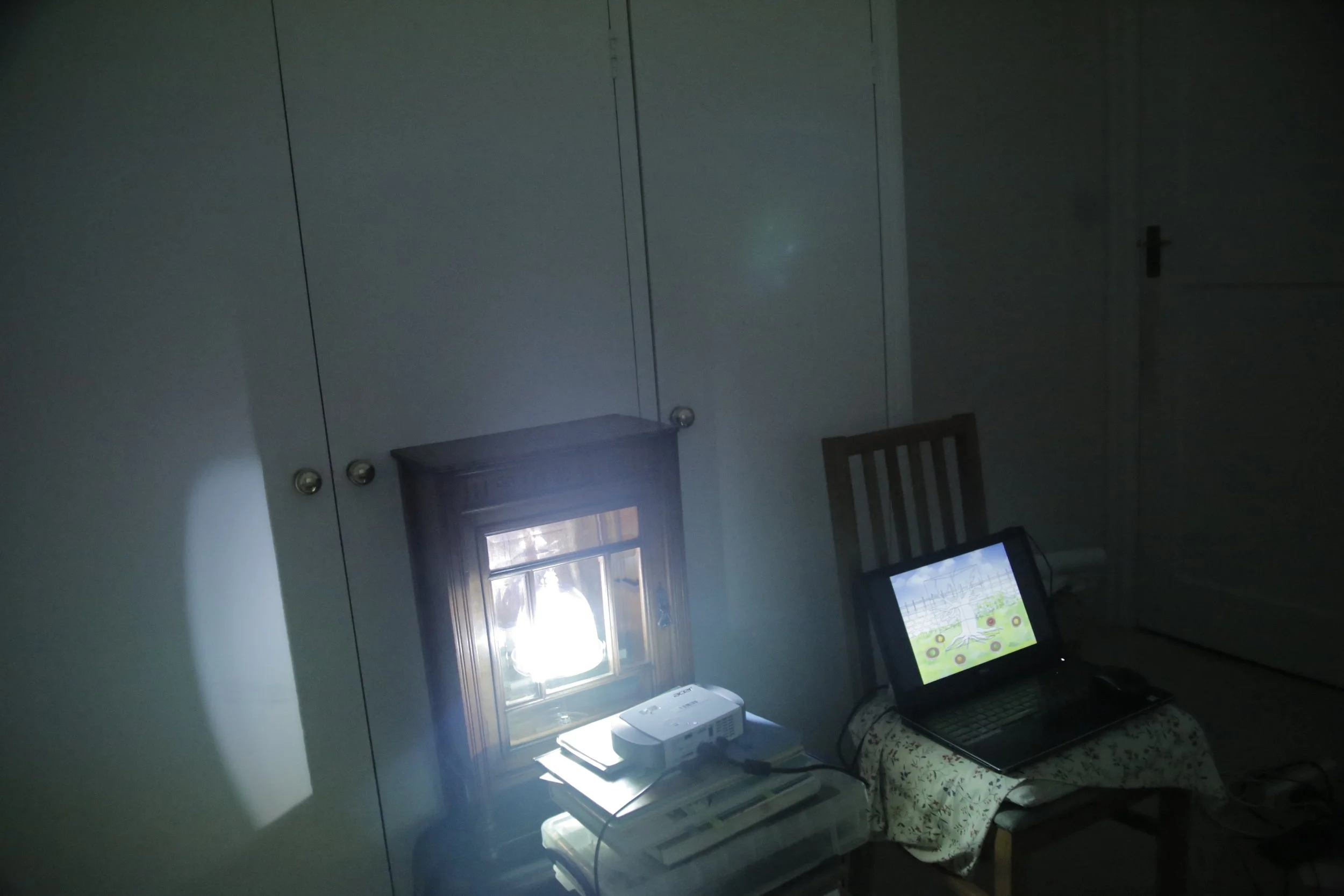 By using the reflection within the installation, Hao creates a new dream window on the curtain. The curtain represents the boundary between the dream world and the real. The film records the disappearing progress of my dream window.
